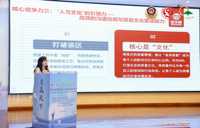 在“质量分享”环节,福建仙芝楼科技有限公司首席质量官杨娟娟结合自身从实验室到生产线的职业经历,分享了《品质筑基,价值领航——从校园到职场的核心竞争力锻造》,指出质量不仅是技术标准,更是一种职业精神与人生态度。福州大学教授丁刚则以《以新质生产力赋能质量强国建设的若干思考》为题,系统剖析新质生产力的内涵及其与质量建设的内在联系,指出创新、数字化、绿色化是未来质量提升的关键路径。
