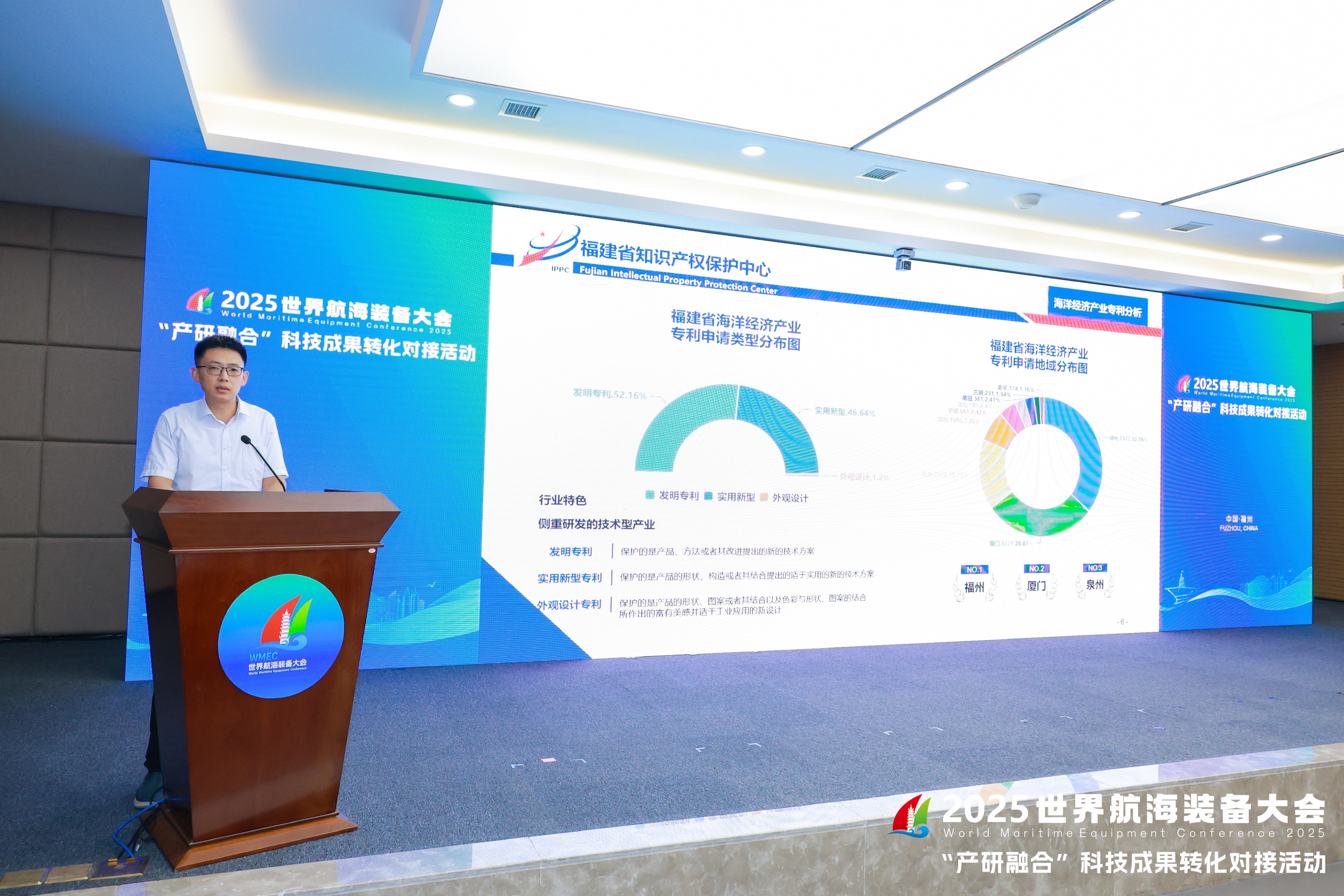 为推动高校院所海洋科研成果及“双五星”专利转化运用,推动科技创新和产业创新深度融合,10月17日,由福建省科技厅、福建省教育厅、福建省创新研究院和福州市政府联合开展的2025世界航海装备大会“产研融合”科技成果对接活动成功举办。来自同济大学、哈尔滨工程大学、中国科学院海洋所等高校院所、省科技厅、省教育厅、省创新研究院、国家知识产权局专利局专利审查协作北京中心福建分中心、福州市领导及市直有关部门领导、技术经纪人机构及涉海企业代表等100余人参加活动。