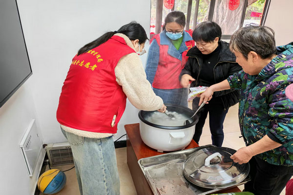 志愿者们分工协作,有条不紊地与社区工作者一起为老人煮汤圆,并将一碗碗热气腾腾的汤圆端到老人面前。在活动过程中,志愿者们与老人们亲切交谈,了解他们的生活状况和需求,为他们提供贴心的服务。有的志愿者耐心地为视力不好的老人读灯谜,有的则陪老人聊天,听他们讲述过去的故事。大家围坐在一起,吃着汤圆,聊着家常,欢声笑语回荡在整个居家养老站。