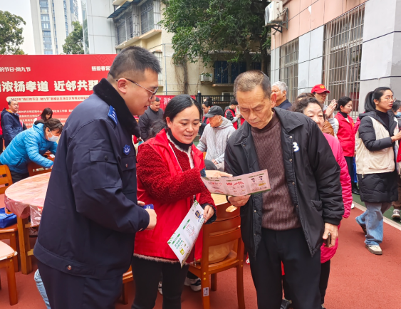 市审查中心支部、市监测服务中心支部党员志愿者通过图片、宣传页等形式向浦下社区居民介绍拗九节的由来和福州传统习俗,以生动的故事案例开展生活垃圾分类知识宣传与指导,宣传平安知识,讲解药品不良反应及医疗器械不良事件小常识,向居民普及垃圾分类和用药安全知识,并提醒注意防范电信诈骗、防火防盗等。