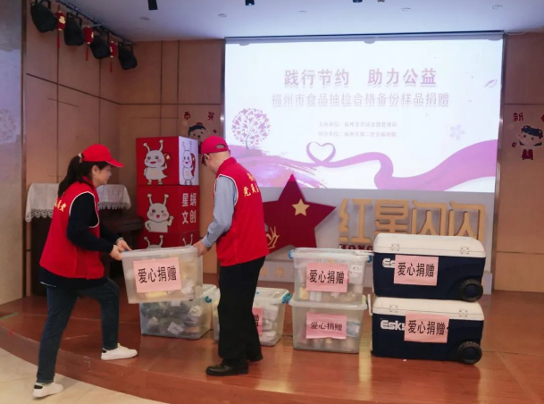 为大力弘扬“厉行节约、反对浪费”的良好风尚,充分发挥食品抽检合格备份样品的社会效用,4月27日上午,福州市市场监督管理局联合福州市第二社会福利院开展了以“践行节俭 助力公益”为主题的食品抽检合格备份样品爱心捐赠活动。福州市市场监管局市产品质量检验所、福建赛福安全技术服务有限公司、福州市第二社会福利院等单位三十余名党员干部和志愿者参加了相关志愿服务。