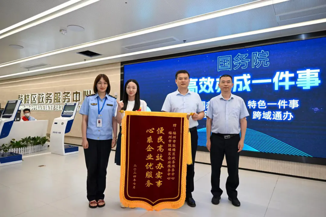 多家餐厅位于不同县(市)区,分别办理营业执照、食品经营许可证变更,要用多少人员、跑多少趟次、去多少地方才能办齐上百张证照?在鼓楼,答案可以是“进一门、找一窗、跑一次”。昨日,某知名五百强连锁餐饮企业经办人员特意带着锦旗来到鼓楼区政务服务中心致谢。